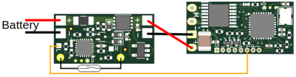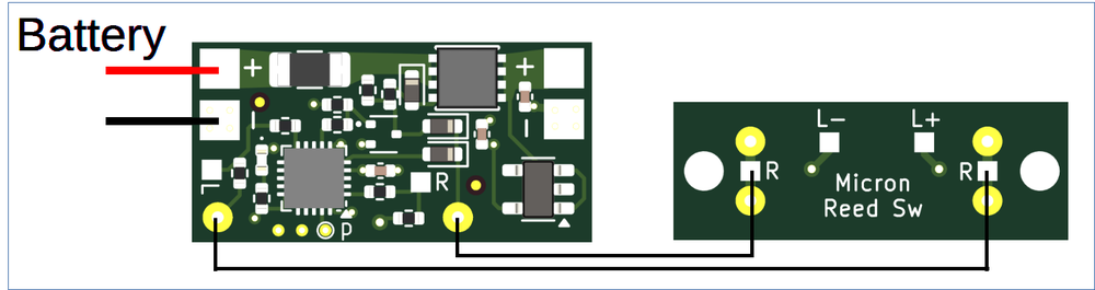 LED to be connected - e.g. when using with the MSW01 remote reed board.