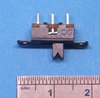 A micro slide switch with SPDT contacts. The body measures just 8.5 x 3.5 x 3.5mm with solder pins on a 2.5mm pitch. Contacts are rated 0.3A. There are no mounting holes so the switch body must be glued into place.